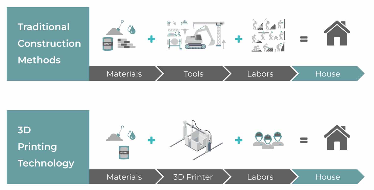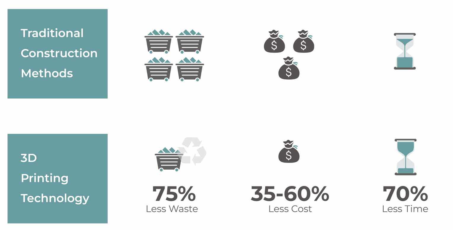 مع تطور مجال البناء بتقنية الطباعة ثلاثية الابعاد ، فإن دمج التكنولوجيا المتطورة مع المواد المبتكرة يحمل وعدًا بتقديم هياكل بمعايير الأداء العالية،و تساهم أيضًا في بيئة مباني أكثر خضرة واستدامة.